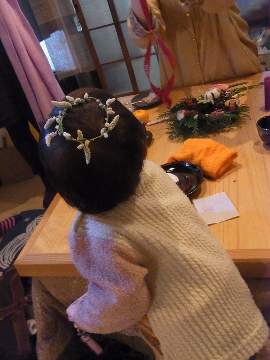 おっと残ったお花で天使が舞い降りた!お子ちゃまも交えて和気藹々。次は来週土曜日。同じ花材なのにまた違った個性あふれるリースが見られる事でしょう。