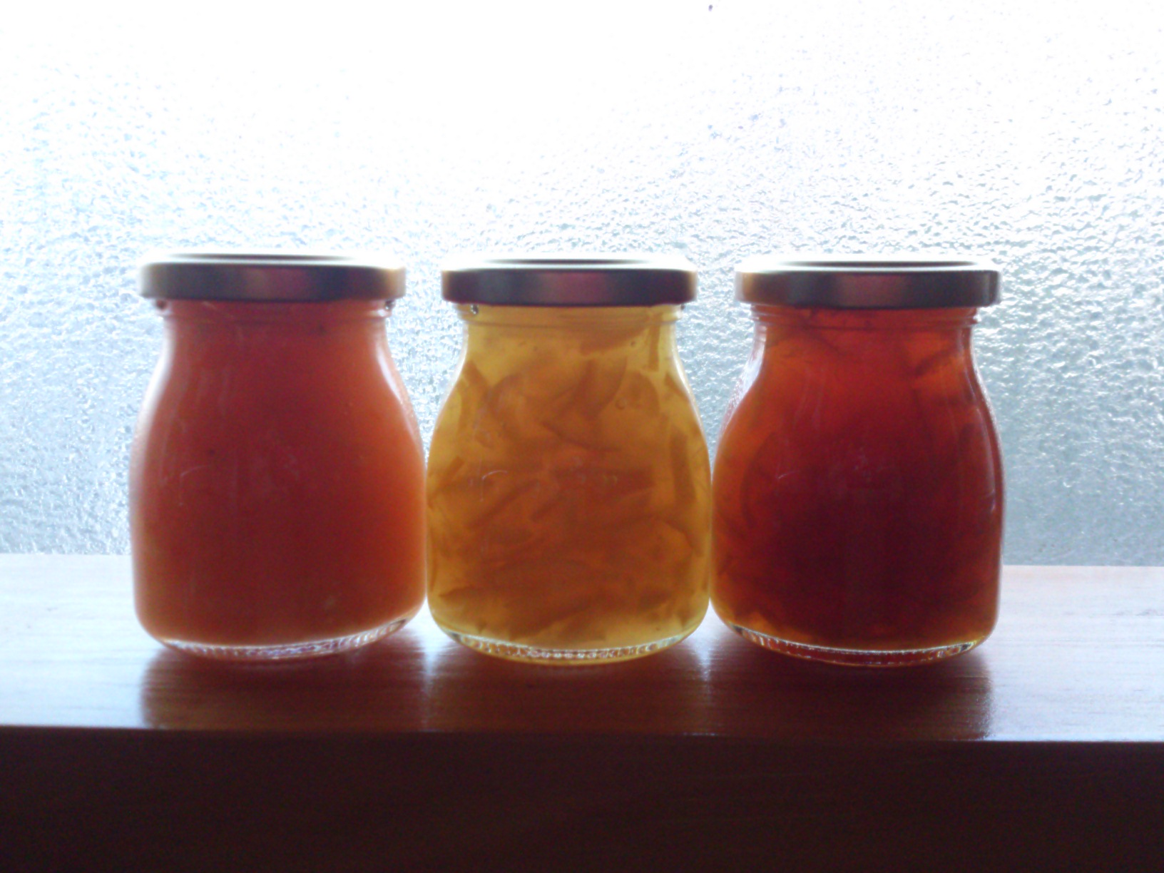 今日完成させたのはこの3種。右から柚子カラメル、柚子プレーン、おひさま。おひさまはもう慣れたもんで安心して出来上がるんだけど、柚子は要領が一定させづらい柑橘類。しかも2分割して片方はカラメル風味に。どうなることかとドキドキわくわくでしたがとても美味しく、果汁と果肉のバランス良く出来上がり。プレーンの方はそのままお湯やソーダで割ってもよし。紅茶に入れても良し。とっても香り高く仕上がってます。カラメルの方はね、うん、オリジナリティー強くてうまーい。今までリンゴでしかやったことなかったけど柑橘類もイケるね。これでまたフレーバーの幅が広がった。