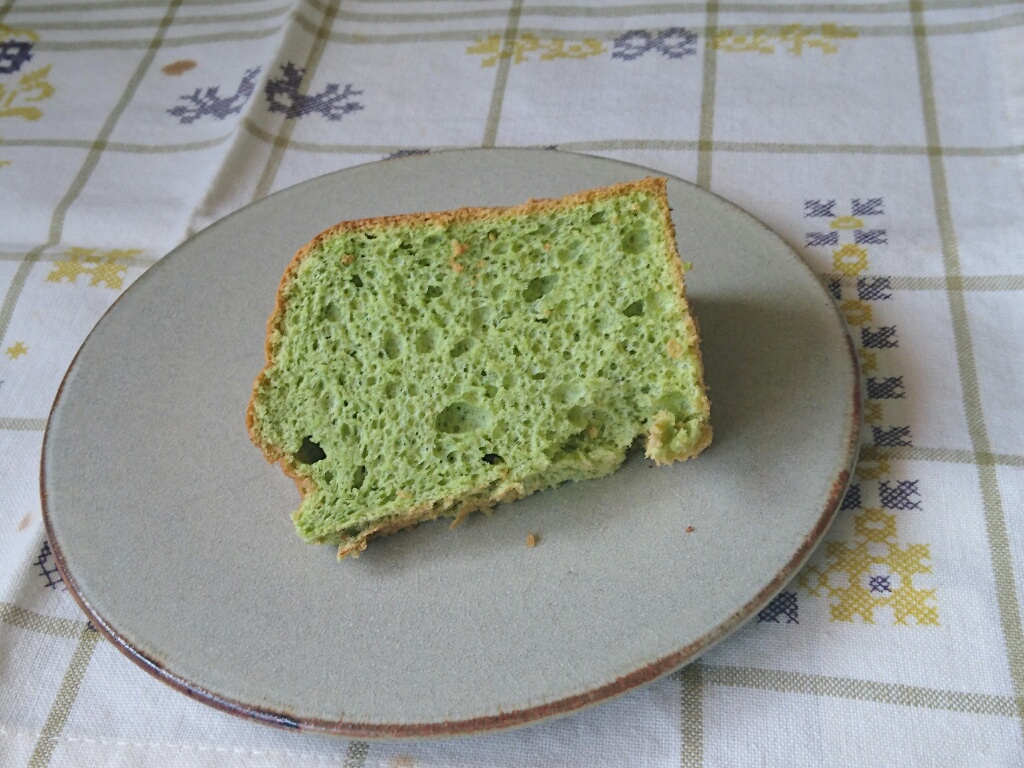 ほうれん草シフォン。もちろん無農薬。来週オーダーの手土産のお菓子詰め合わせにはこちらをまた焼いていれようかな。
