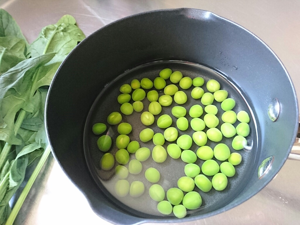 グリンピース甘煮。ふっくら炊けました。こつは落し蓋。煮汁から顔を出したらアウトです。