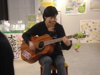 ケロアート2006のタイトルに相応しく、イラストレーター平野隆司さん、そして東京からかえるミュージシャン?風来直さん、登場。