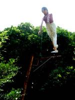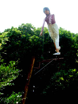 頭上にはバンジー美女が白目をむいて、やってきたひとを驚かそうと、立ち姿でいます。