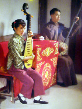 そして、さらに新しい宝石店の開店にでくわしました。宝石店の出店競争が激化しているのでしょうか。さっきのはアトラクションが中国古典演劇みたいだったけど、こっちば、吹奏楽団です。