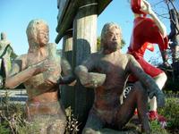 へんてこな風船を背景に、家族連れた写真をとりまくっていました。