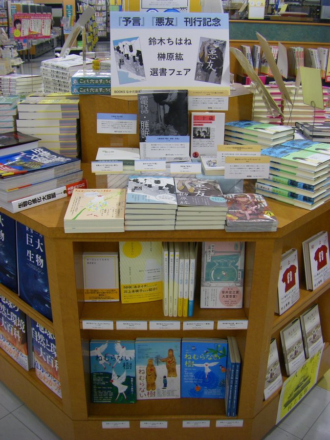 2020.07.08 フェア 『予言』『悪友』刊行記念フェアが開催されます。 『予言』『悪友』刊行記念フェアが開催されます。 鈴木ちはねさんと榊原紘さんの選書書籍も並びます。どうぞ、お楽しみに。 ◆開催書店 BOOKSなかだ掛尾本店(富山)