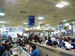 釜山最後の夜の夕食は『ぐるぐるプサン』に紹介されていたジャガルチ市場の魚専門店をのぞいた。だだっ広いフロア全体が似たような魚の専門店だ。ガイドブックには釜山ならではの新鮮な刺身や鍋が食べられると記されている。私が着席した折は客の姿はまばらだったが、そのうちどんどんグループの客がやって来る。市場ならではの圧巻の光景だった。
