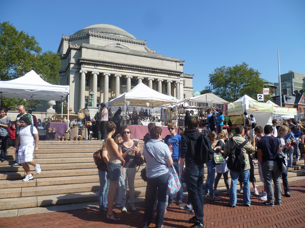(写真は上が、モシャー教授。晩年のミラーと親交があり、「背が高くとてもハンサムな人だった」と語った。青空のコロンビア大学キャンパス。インタビューを終えた後、10年前の9・11の時もこの日のような青空が広がっていたと教授は空を見上げた)