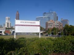 (写真は上が、「アンダーグラウンド・アトランタ」と呼ばれるダウンタウンの商店街。アトランタは米国の中でも太った女性が目立つ印象。下は、コカ・コーラ社の土地の寄贈を受け、公民権や人権の大切さを訴えるセンターができるダウンタウンの建設予定地)