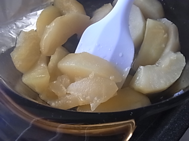 200度で30分。ほらトロットロ。こいつは来週あたりに作ろうかと思っているリンゴムースに使う予定。空いた時間に下準備しとくと後が楽だからね。
