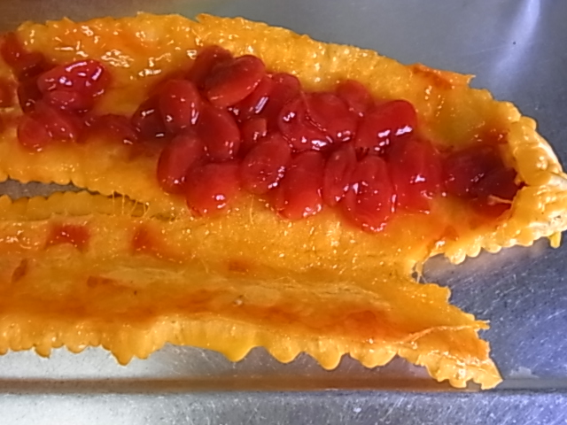真っ赤に熟れたゴーヤ。とっても甘いんだけどごめんなさい、これも食べれない・・・。