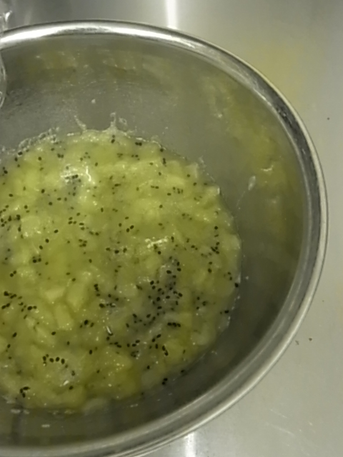 キウイ&バナナジャムの仕込み。明日バナナを加えて煮上げます。