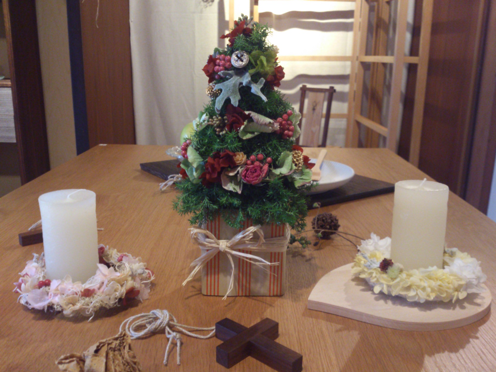 昨日はね、sumiresanが今日のクリスマスツリーワークショップのサンプルを作って来てくれたの。どう?超かわいい!!やっぱこの人凄いわ~、何やらせても予想以上の物を作り上げてくる。絶対みんな喜ぶよ、こんなツリー作れるなんて。忙しい中初チャレンジありがとね。
