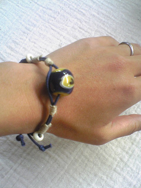 このブレスレットも内職の一環。結構良い出来です。