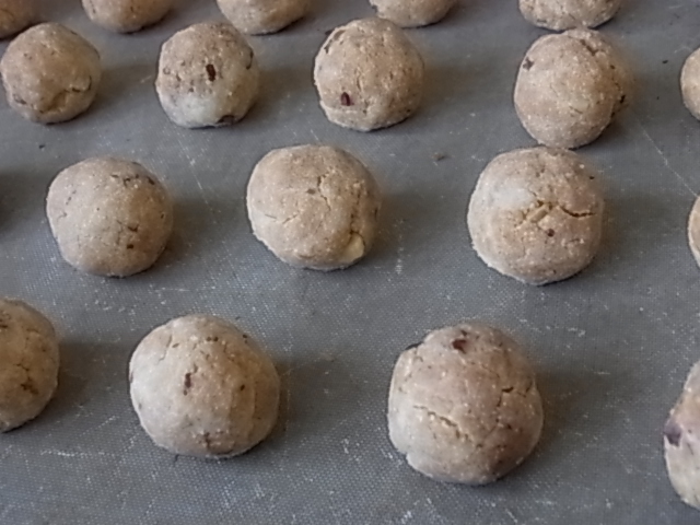 こっちは米粉&ナッツボール。桑野農園さんの米粉は粒子がそれほど細かくないのでざっくりしたお菓子に向いてると思うんです。粒子が細かく無い分コメの味はしっかり感じるんですよ。だから是非お菓子にしたくて。