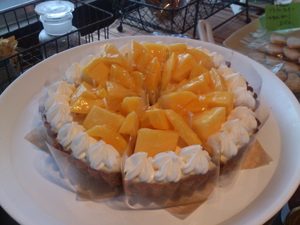 マンゴーの豆腐レアチーズタルト。タルト台もノンバターでヘルシー路線のタルト。
