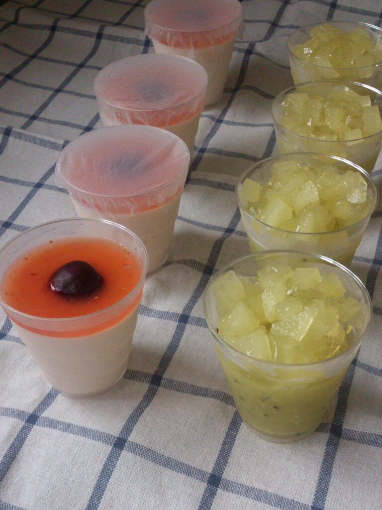 だからこっちも自信を持って美味しい。すももヨーグルトムースカップ(左)ときゅうりジュレ(右)。特にきゅうりジュレジュレは意外性もあって一押し。キウイと仲良しきゅうりさん。二人を下の層に。んで、青臭さをカモフラージュするためにリンゴのジュレを植からかける。アガーとゼラチンを使ってそれぞれ作ってみたけど、これからの季節。持ちを考慮して、温度に強いアガーで行こうと思ってます。テイクアウトしても溶ける心配がない。
