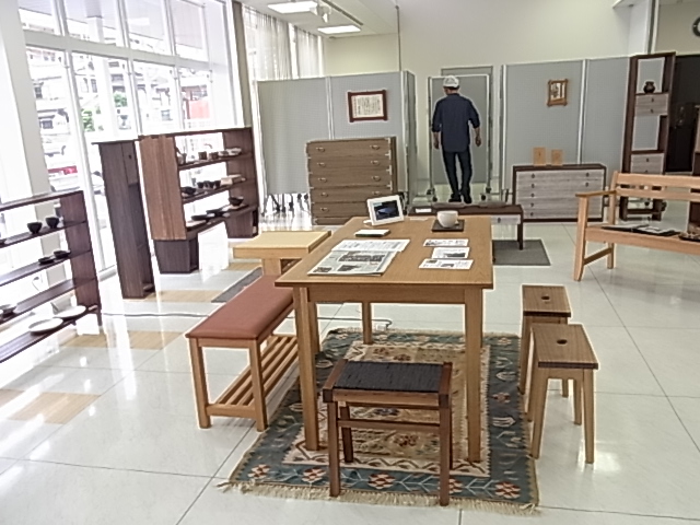 赤間宿の桐吉家具工房(K+)さんの個展を観に古賀のおんしんギャラリーへ。あ、あの奥にガニ股で映ってるのが店主(笑)。