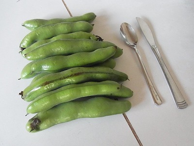 我が畑の無農薬有機そらまめ。これと海老のキッシュを考えています。あと、
