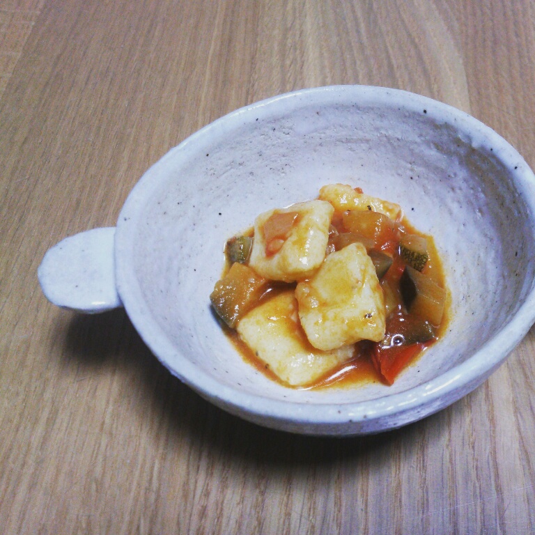 ソースは適当にラタトゥユ。惣菜屋さんのお手伝いは我が家の晩御飯のレパートリーを増やしてくれる。素材である野菜を育てた父本人に還元出来るもんね、おかずだと。ありがたい。