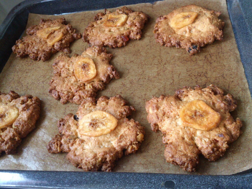 バナナグラノーラ。今季ラストの焼成になるでしょう。今年も大人気のクッキーでした。
