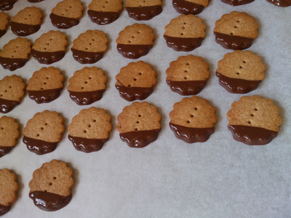 福岡産全粒粉のチョコクッキー。私が個人的に気に入ってたところ、バイト先の店主からもお墨付き。で定番仲間入りさせてみようかと第二ラウンド突入。上掛けチョコの口溶けを体感して欲しい一品。