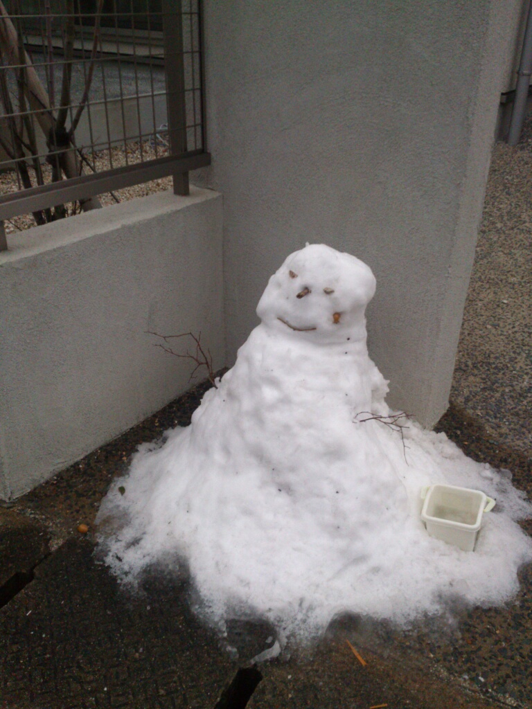 ご近所さんに現れた雪だるま。高齢化が進んだこの団地にも、最近若い家族が移住して来てて。こんな光景を目にすると心なしか童心に戻るね。