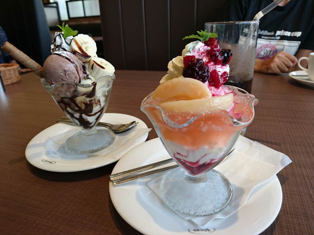試合後に20年振り?てくらいひさびさに食べた桃のパフェ。意外にも美味しかった!