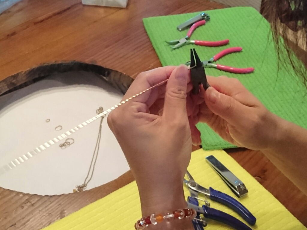 只今、畦に出品して下さってる、アクセサリーデザイナーshizukuさんのワークショップ開催しました。台風さん、停滞してくれてありがとう!
