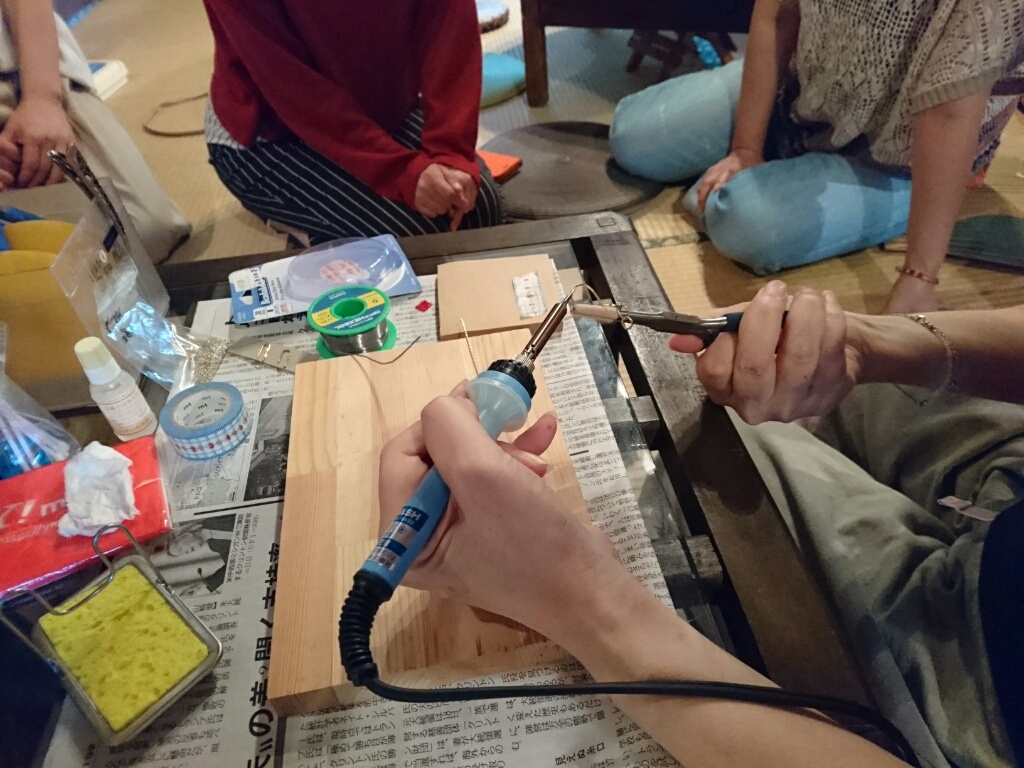 半田付け。ここは難関でしたが皆さん積極的に実践。