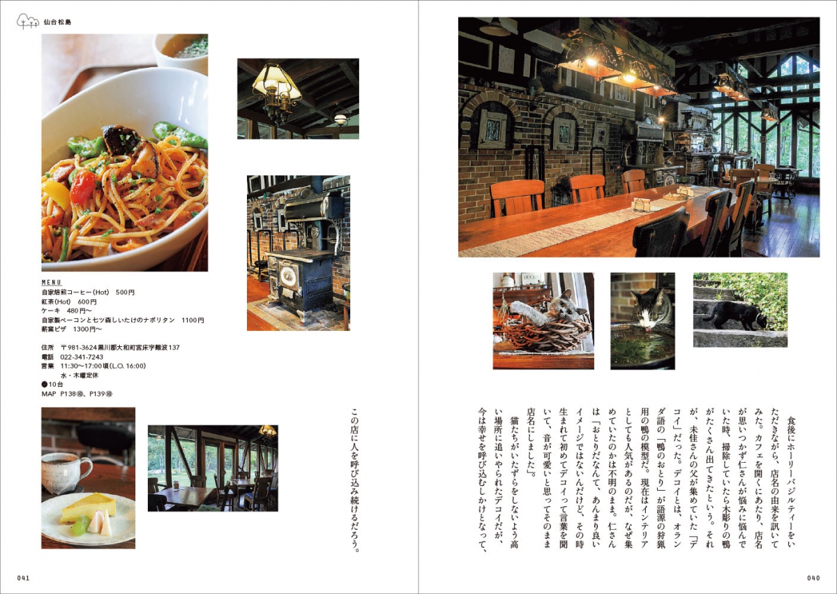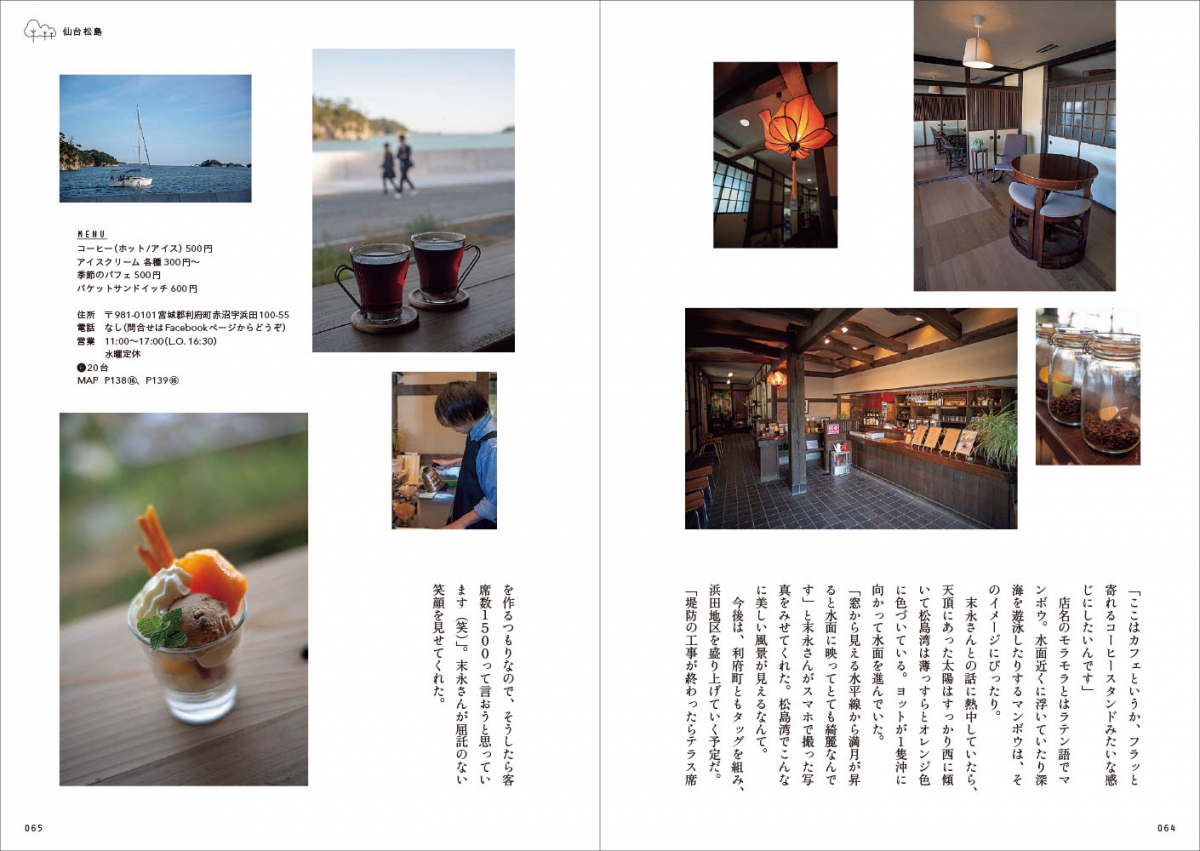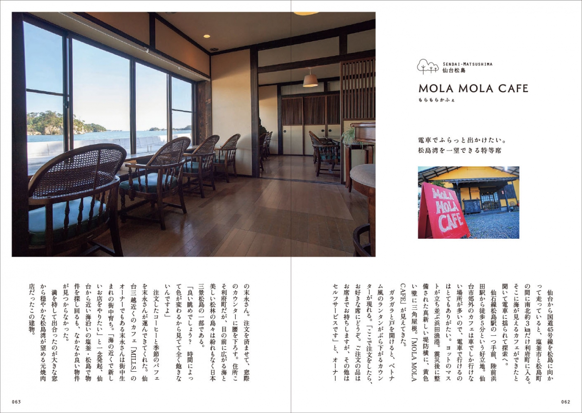 おしゃれなカフェがあるのは、街中だけじゃない。気仙沼から丸森まで、みやぎを駆け回って見つけたこだわりの美味しい珈琲、からだを想う料理、居心地の良い空間……そして、震災がきっかけの新しい一歩。個性と情熱があふれる34個のカフェストーリーを巡る旅へ。