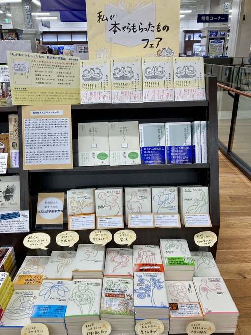 2021.10.26 フェア 『私が本からもらったもの 翻訳者の読書論』刊行記念フェアが丸善京都本店で始まりました。 『私が本からもらったもの 翻訳者の読書論』刊行記念フェアが丸善京都本店で始まりました。 今回のフェア開催にあたり編著者の駒井稔さんがメッセージを寄せられ、おすすめの光文社古典新訳文庫を紹介されています。 ぜひお立ち寄りください。